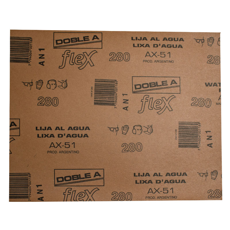 Lija de papel impermeable de alto rendimiento. Flexible, de uso en seco o húmeda al agua. Su uso principal es en hogar y obra y también en talleres de reparación de carrocerías, chapa y pintura.